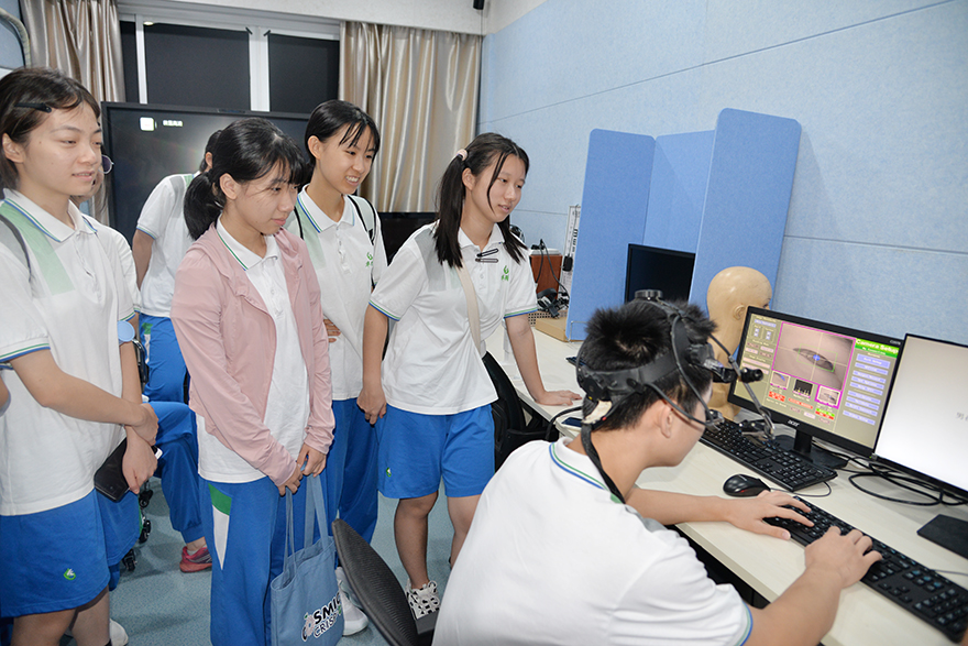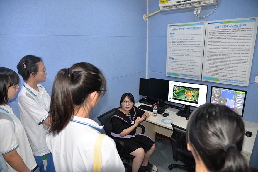 接着,同学们进入实验室,扮演心理学实验的主试和被试,去体验心理学实验的过程,其中实验一为姚宇杰博士指导的眼动与动作,实验二为黄秋岚老师指导的眼动与阅读。同学们在这一过程了解心理学眼动研究的基本流程。
