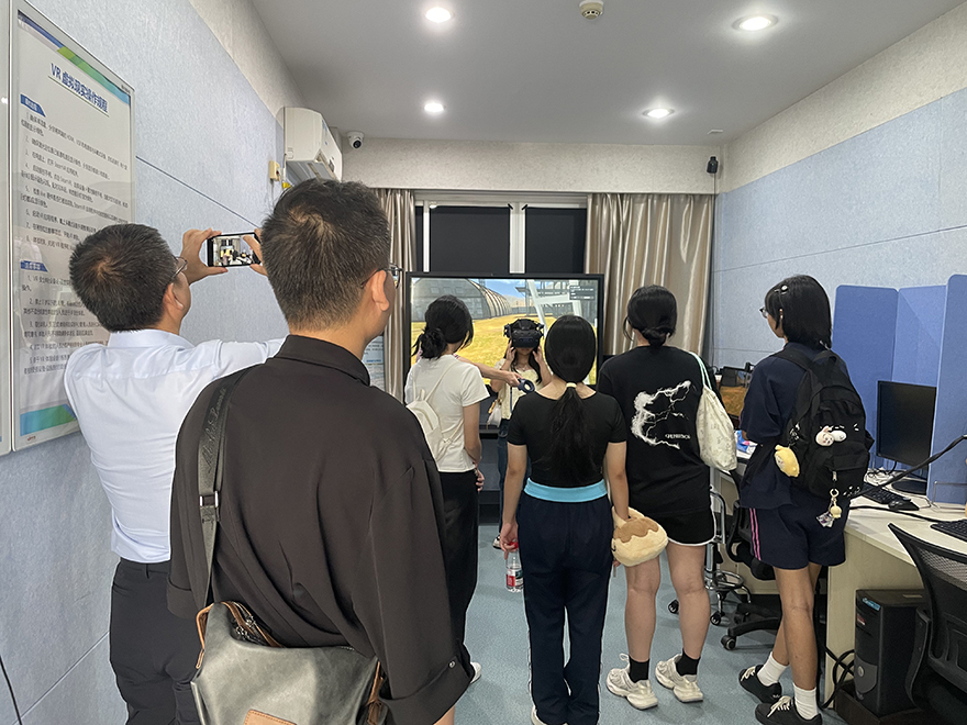 为迎接中国致公党成立100周年,在致公党广东省委会指导下,7月17日,致公党华南师范大学总支部、统侨总支部联合主办“致公育蕾行动”之走进大湾区2025年广州研学活动,组织来自汕尾市捷胜中学的10名高中生在广东省政协委员、职业教育学院刘志文教授的带领下走进心理学实验中心,开展研学参访活动,中心陈婉仪博士向高中生们详细介绍正在做脑电实验研究相关知识,让大家亲耳“听见”大脑活动,刘婧副教授和李创恒老师指导大家在VR实验室体验“高空断桥VR虚拟仿真训练”和“搜索物品记忆实验”,沉浸式场景更让同学们惊叹“科技与学术能如此奇妙融合”,本次活动让大家在沉浸式体验中开阔视野、启迪心智,让“致公育蕾”的种子在大湾区沃土中持续生长,为乡村振兴注入源源不断的教育动能。