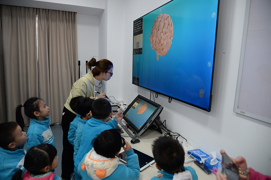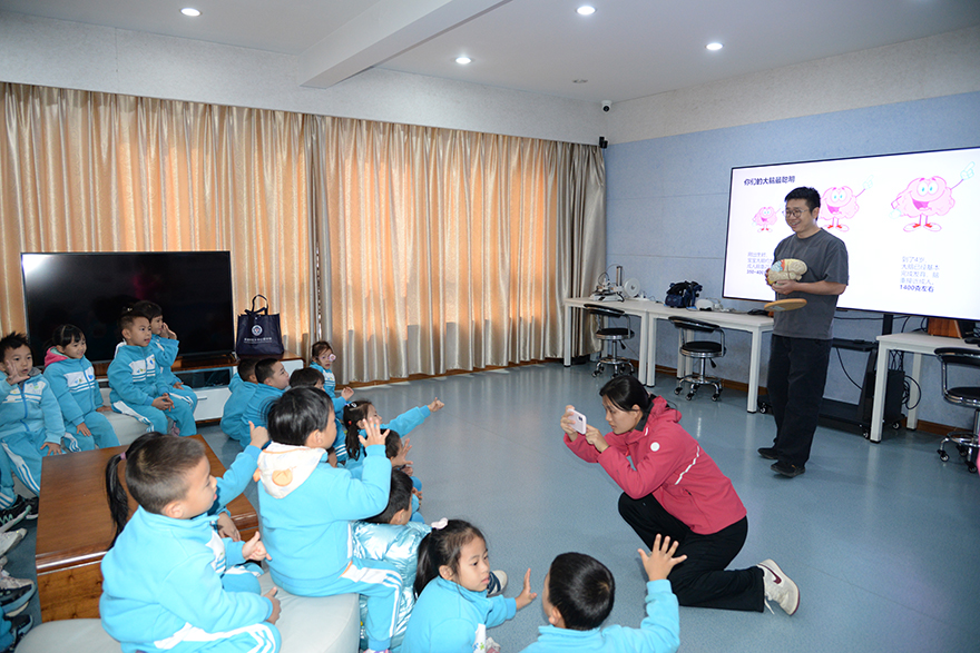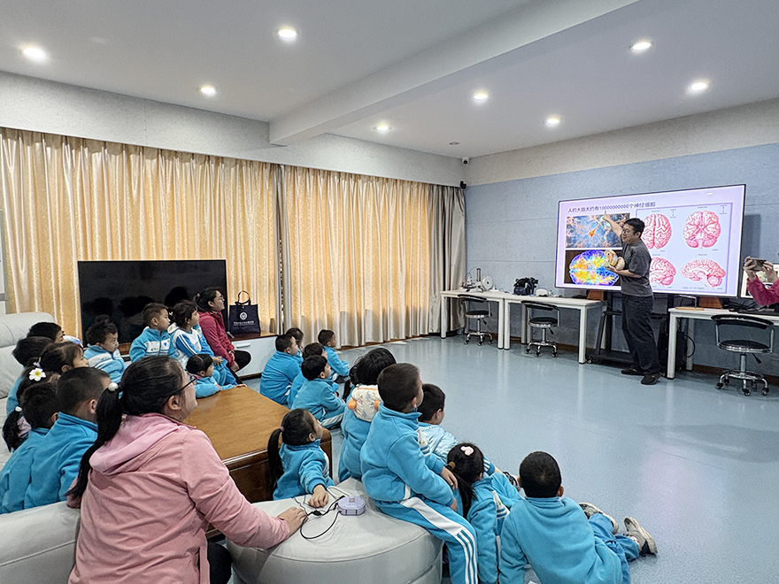 2025年11月19日,华南师范大学附属幼儿园26位小朋友们在吴冰冰、陈远莹、叶秋华、黄园园四位老师的组织下到访中心开启《揭秘大脑奥秘:——神奇的大脑》社区研学活动,学院党委陈玉萍副书记、中心孟阳老师和志愿者们向小朋友介绍了大脑结构知识,并指导小朋友们开展了3D大脑模型打印、观看大脑三维模型展示等活动。