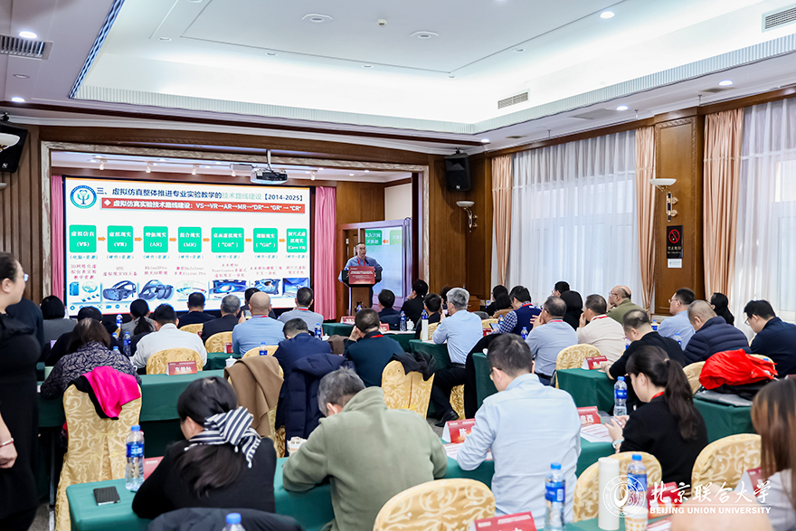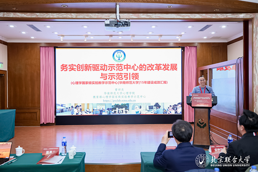 2025年11月28日至30日,由高等学校国家级实验教学示范中心联席会文综学科组主办,北京联合大学应用文理学院、应用文科综合国家级实验教学示范中心、文化遗产传承应用国家级虚拟仿真实验教学中心承办的“国家级实验教学示范中心文综学科组2025年年会暨第十二届创新发展研讨会”在北京成功举行。本次会议以“数智赋能与融合创新:文科实验教学的高质量发展”为主题,汇聚全国文综、考古、法学、教育/心理、语言、虚拟仿真等领域的专家学者、一线教师与管理人员,共同探讨文科实验教学在数智时代的发展路径与创新实践。 中心曾祥炎主任受本次会议邀请,做了题为“务实创新驱动示范中心的改革发展与示范引领”的主题报告,并就心理学国家级实验教学示范中心[华南师范大学]15年建设成效向与会代表做了交流和汇报。 大会还进行了分组研讨,与会代表围绕课程体系建设、虚拟仿真资源开发、实验教学协同机制与技术人员培养等主题展开深入交流,分享各校示范中心在实践教学改革中的探索成果。研讨氛围开放务实、交流深入,代表们普遍认为应继续加强经验互鉴,推动文科实验教学在数智化背景下的创新发展。 最后,参会代表深入应用文科综合国家级实验教学示范中心和文化遗产传承应用国家级虚拟仿真实验教学中心深入考察,学习这两个中心的先进建设与管理经验。