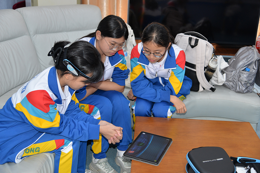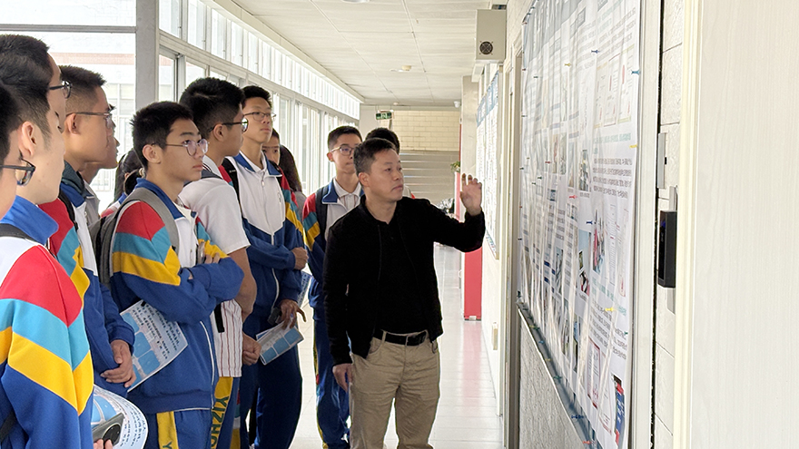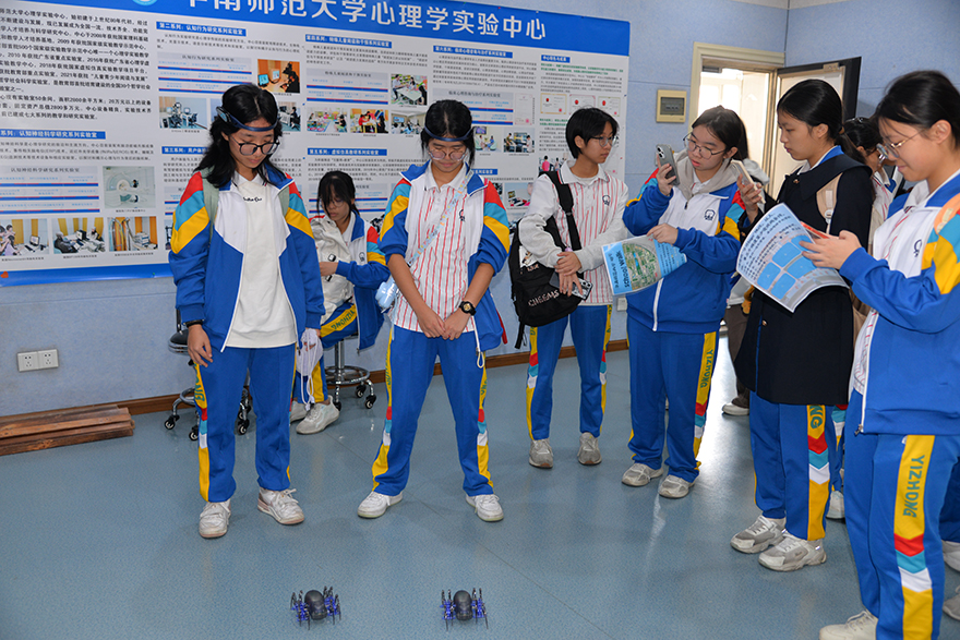 2025年12月6日,新会一中师生一行90余人到访中心开展“汲取智慧、笃定前行”研学活动,中心李创恒老师、研究生陈臻同学、贾秀文同学一起迎接师生们的到访,向师生一行介绍中心整体概况和脑控技术知识,并指引师生们现场体验脑控蜘蛛、脑控驾驶、BrainLink专注力训练等项目。