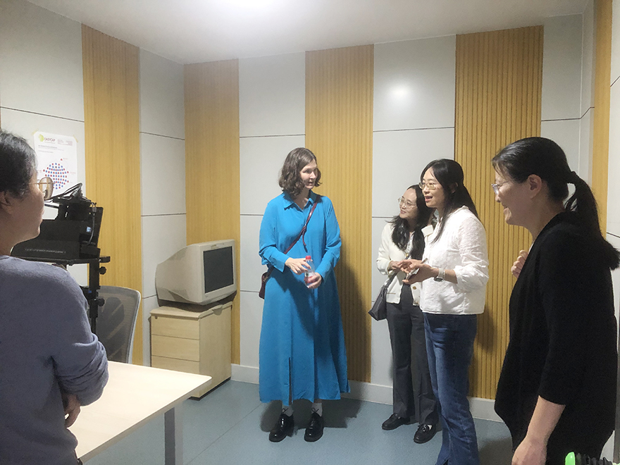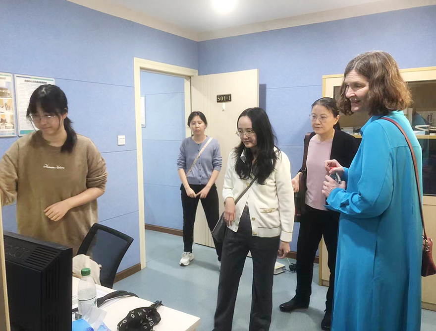 2025年12月10日,哈佛大学Jesse Snedeker教授在学院王穗苹教授的陪同下来访中心参观交流,王穗苹教授、陈雪梅老师和杨锦棉老师分别向Jesse Snedeker教授详细介绍中心概况和实验室建设与管理,并陪同深入到BP64导脑电实验室、Neuroscan 64导脑电实验室、EyeLink1000眼动实验室、心理应用技能综合实训实验室、睡眠研究实验室参观和了解学生开展实验情况。