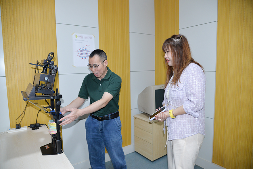 2026年3月20日,北京师范大学心理学部韩卓副部长一行在曲琛教授的陪同下考察中心,中心主任曾祥炎教授向韩卓副部长一行介绍了中心整体概况、实验室规划建设、队伍建设、主要建设成效,并陪同韩卓副部长一行深入到各实验室考察参观,详细介绍了每间实验室的功能布局、空间设计、数智化管理和各项管理制度并分享了相应的管理经验。